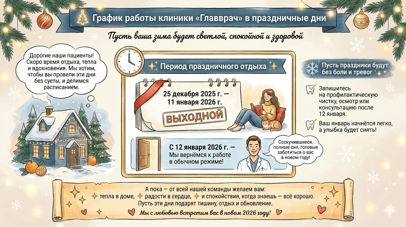 Если вы давно планировали профилактическую чистку, осмотр или консультацию — самое время записаться на удобную дату после 12 января.