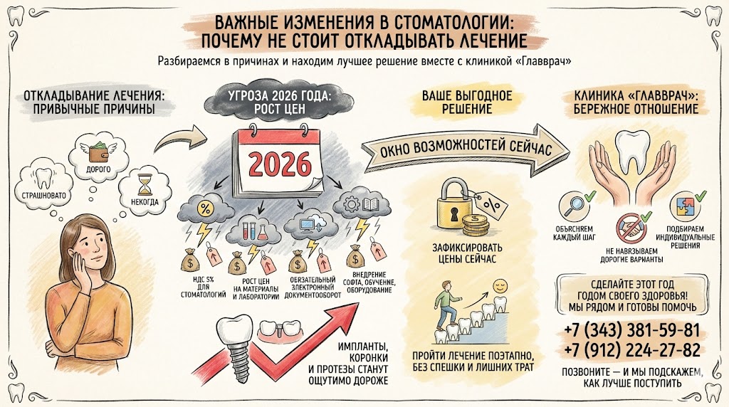 Мы не хотим никого пугать, это просто факты. К сожалению, экономика диктует свои правила: в 2026 году сложное лечение — имплантация, установка коронок, масштабное протезирование — станет ощутимо дороже для всех пациентов в стране.