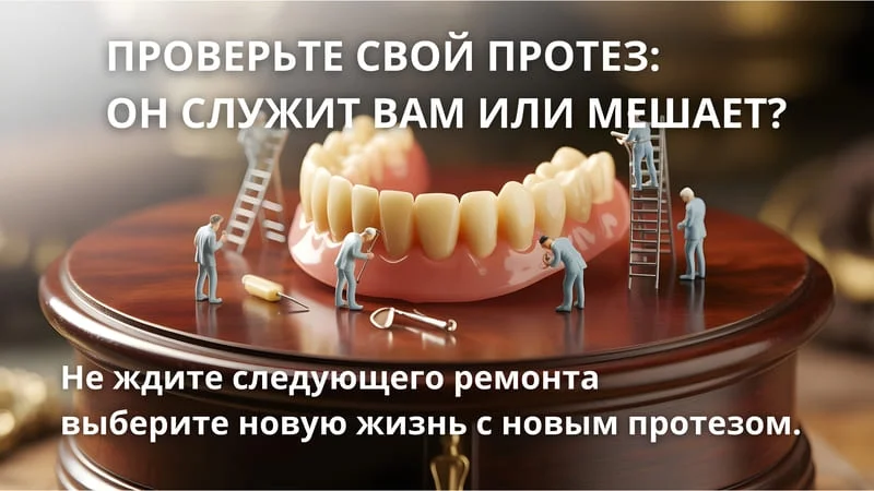 📌 Если протезу уже больше 3–5 лет, то он буквально «не узнаёт» своё место во рту. Даже если внешне всё в порядке, внутри уже есть микронные несоответствия, из-за которых нарушается баланс: