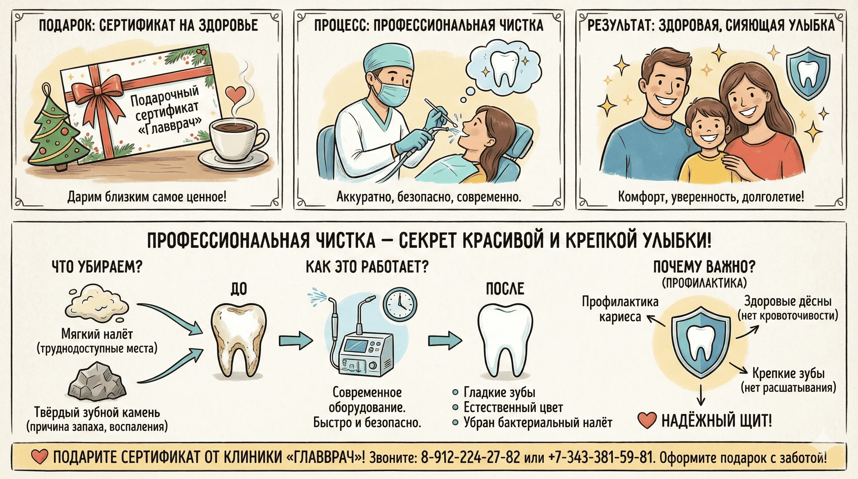 🎁 Подарите не просто вещь, а сияние и здоровье: Сертификат на профгигиену в «Главвраче»